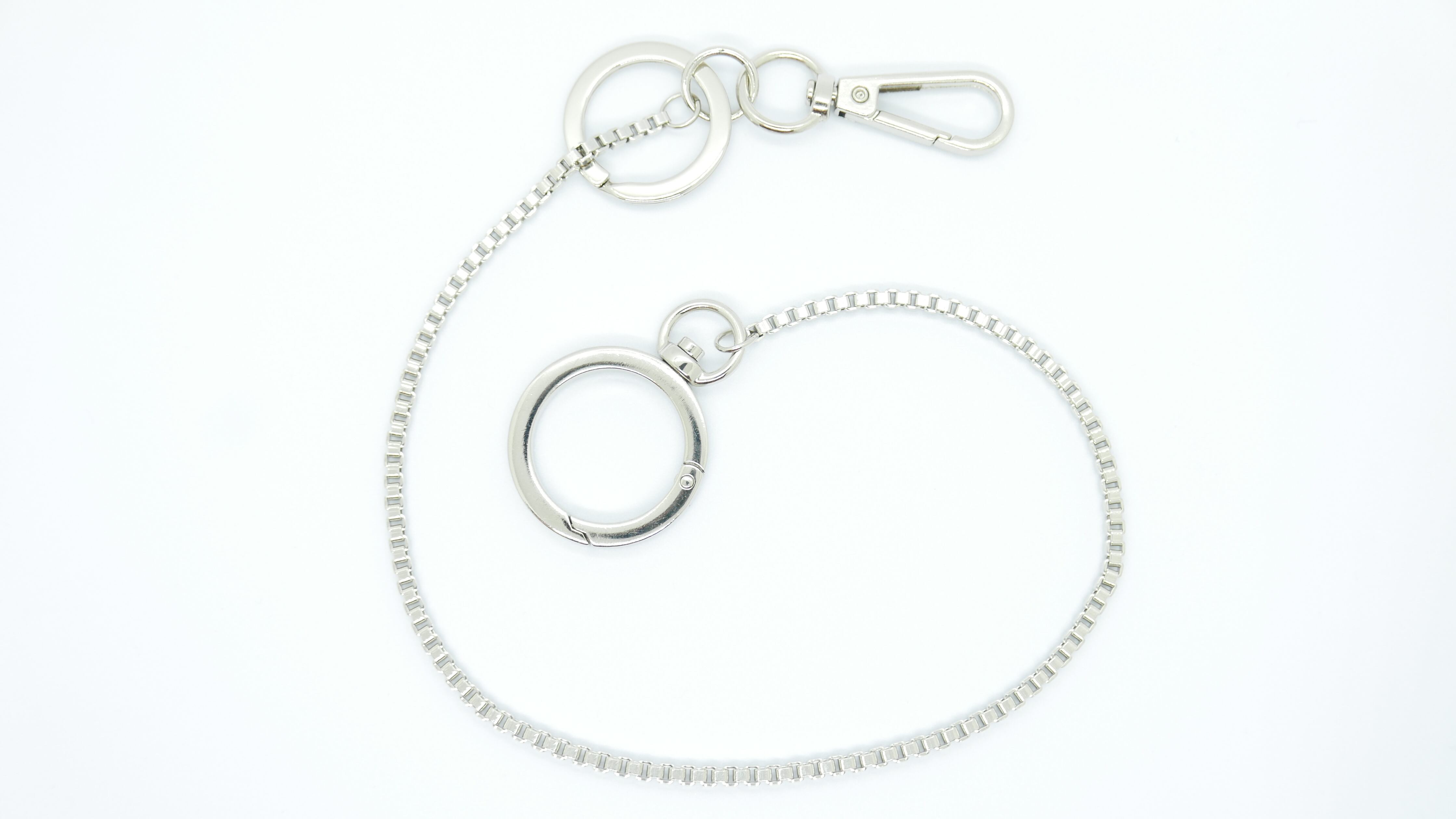 高級感あふれるロジウムコーティングされた真鍮で作られたオリジナルデザインのウォレットチェーン。