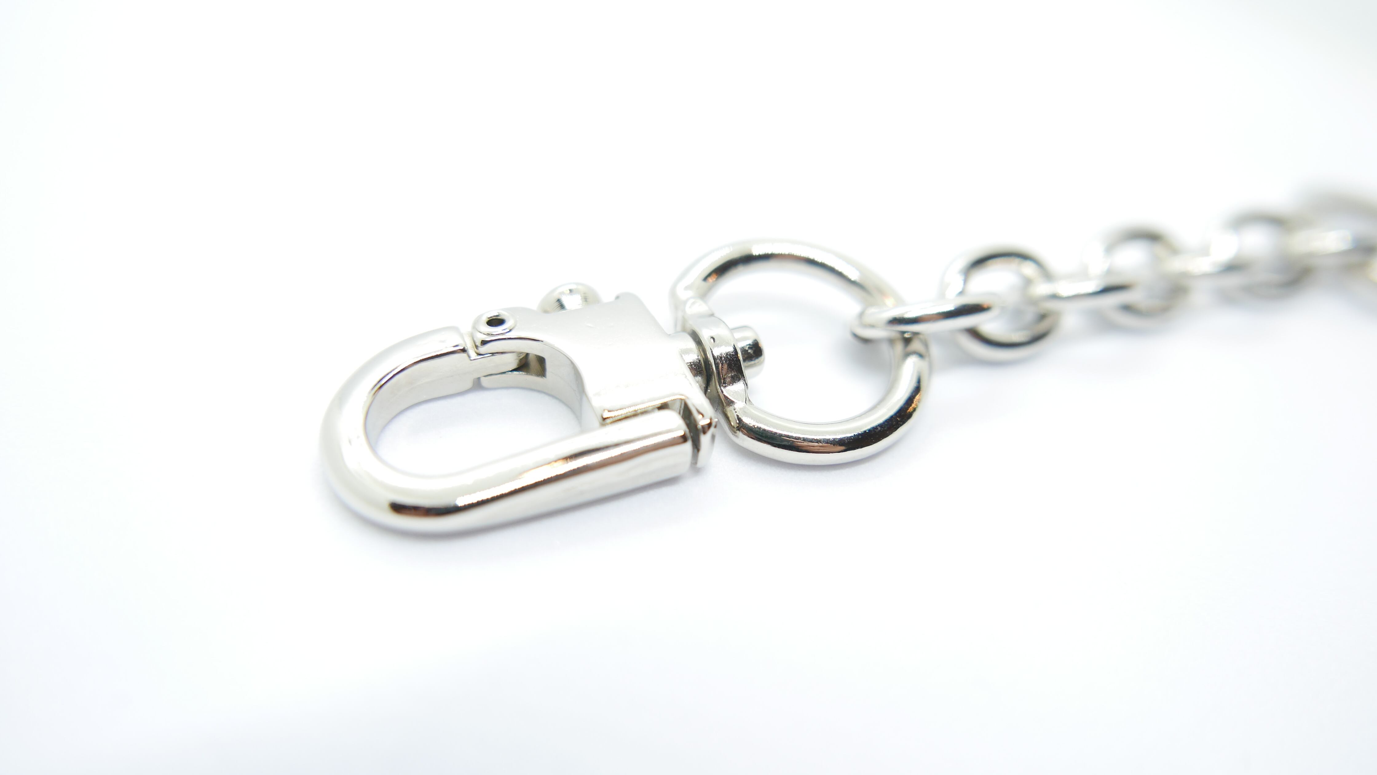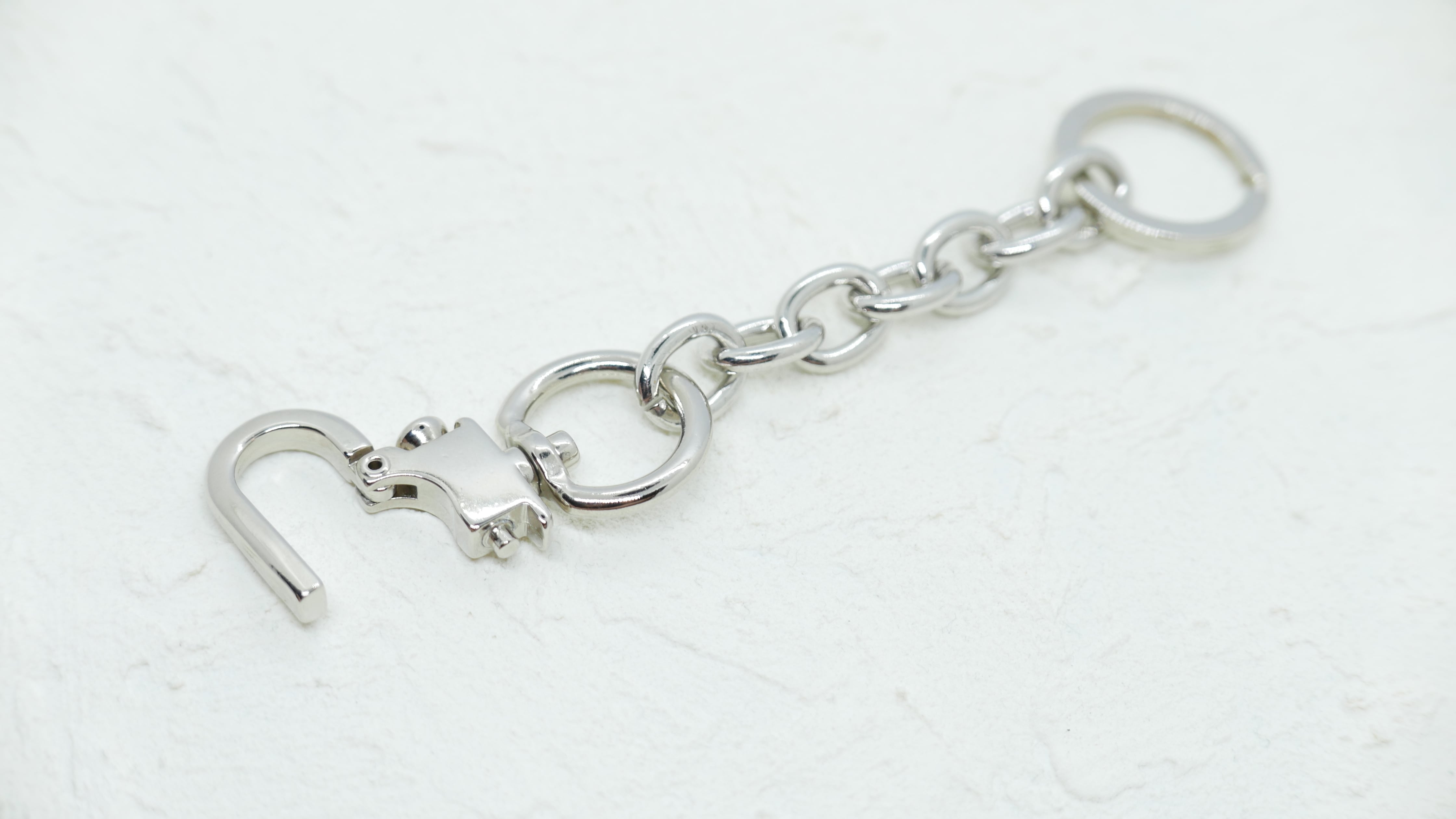 高級感あふれるロジウムコーティングされた真鍮で作られたオリジナルデザインのキーチェーン。