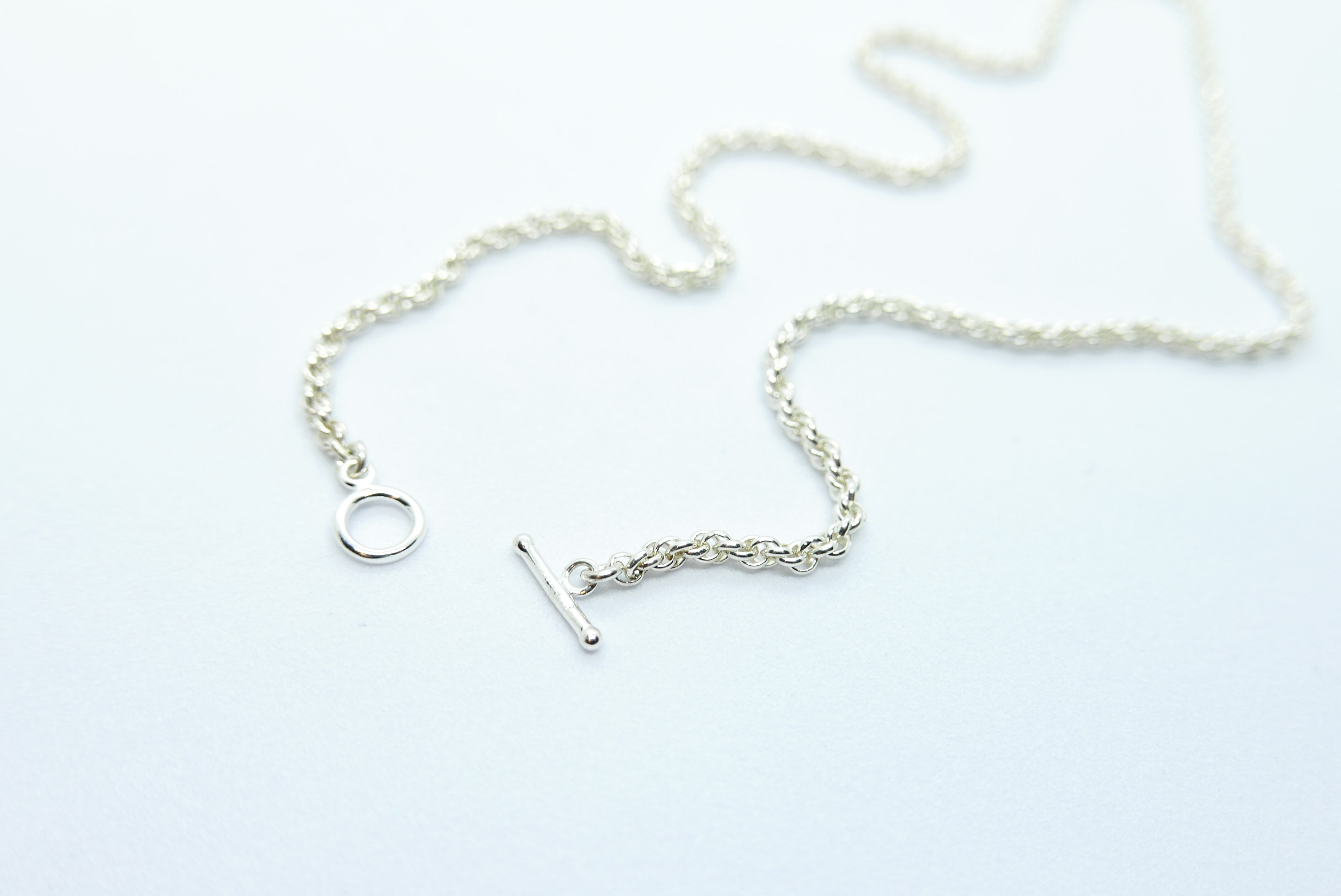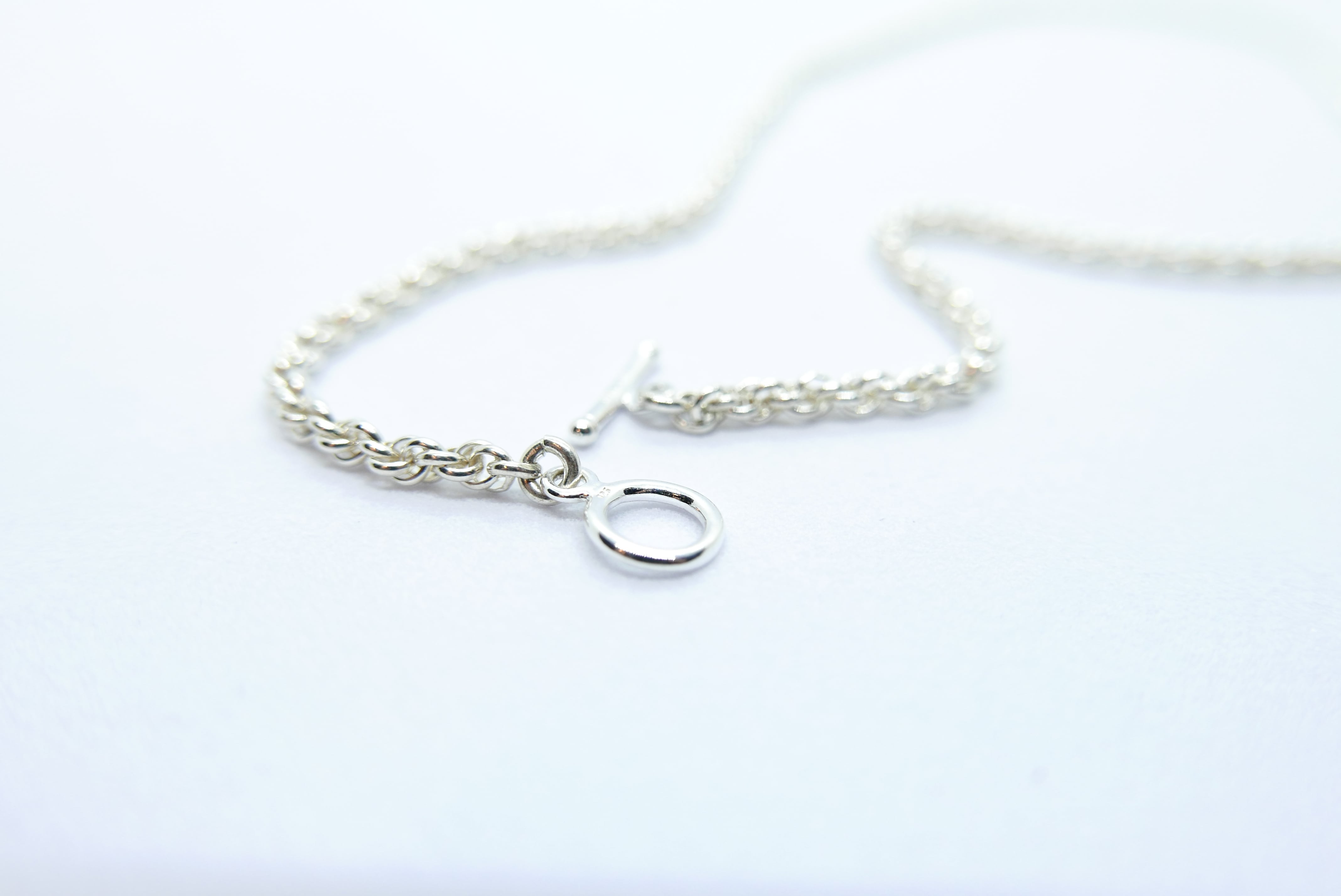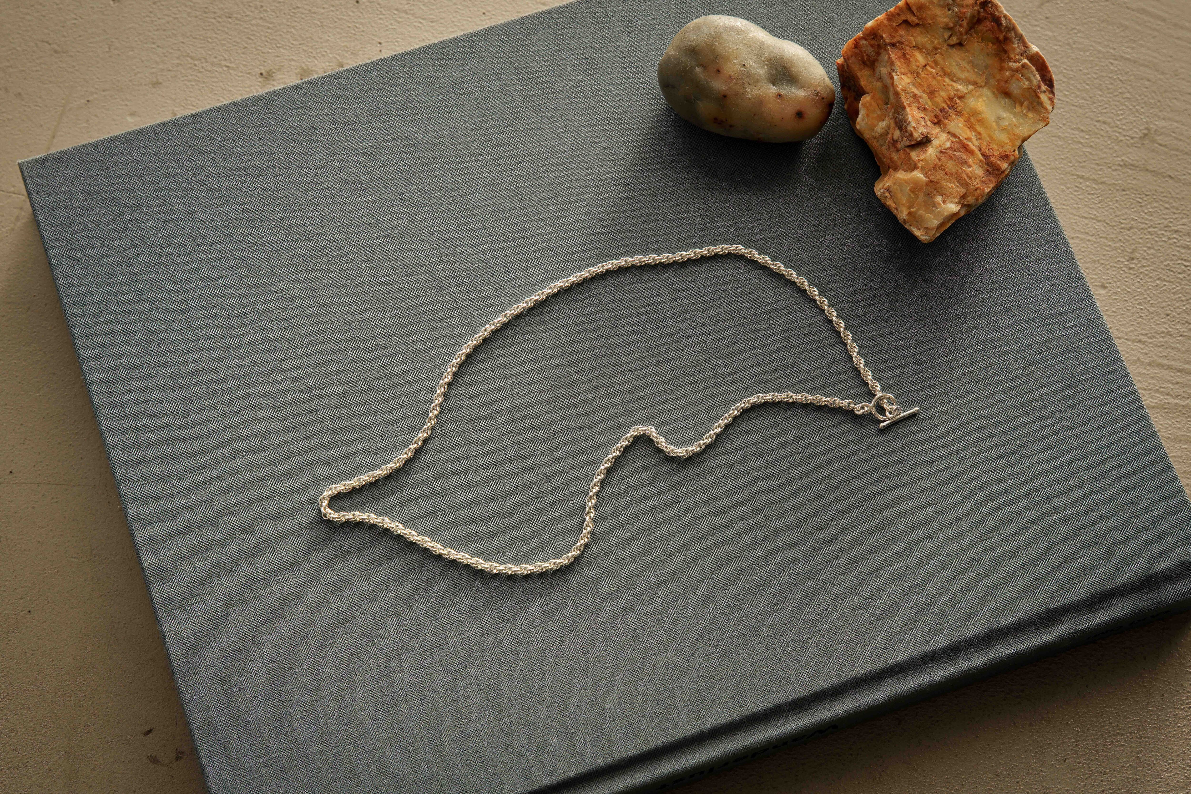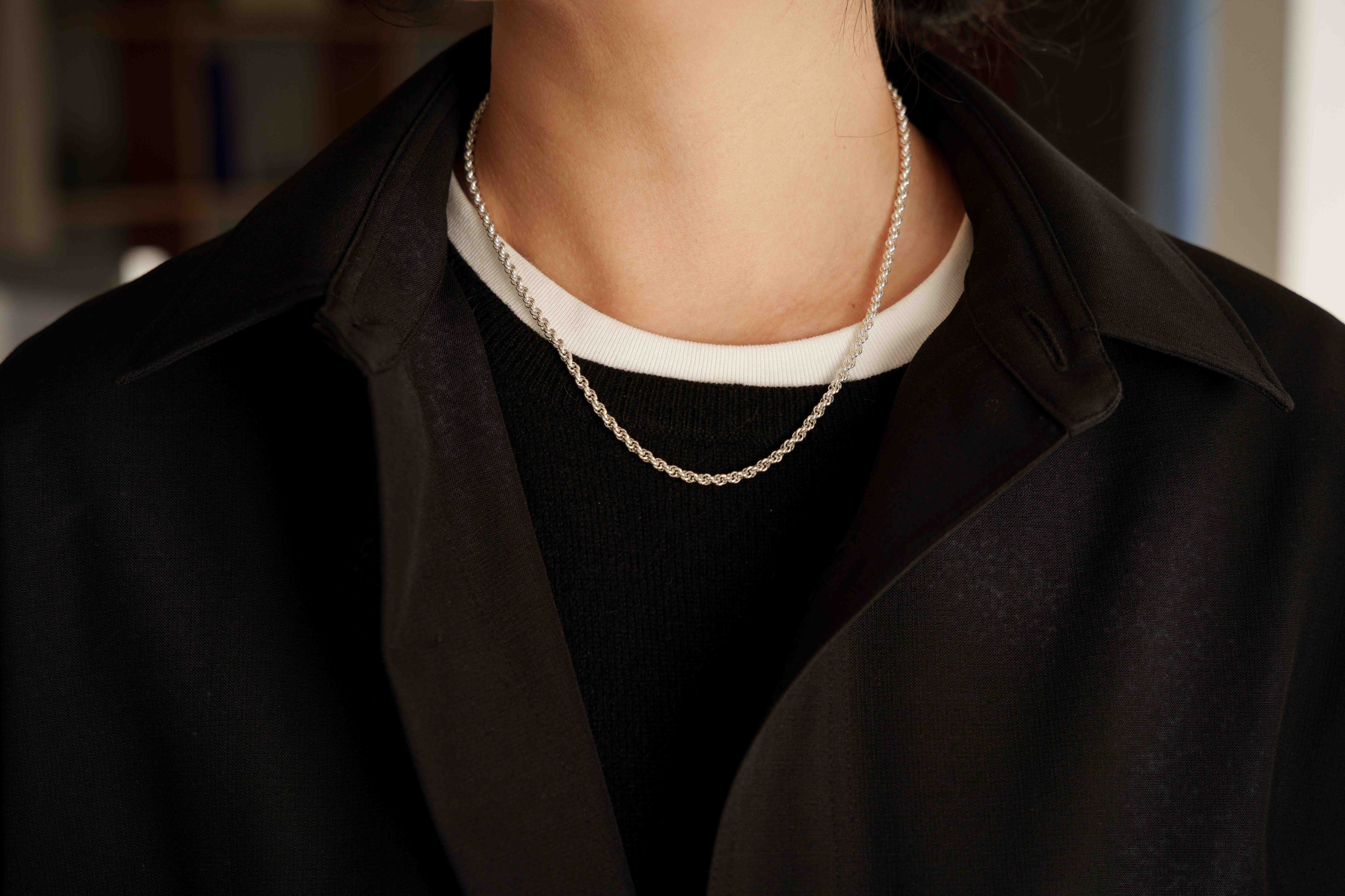 繊細に編み込まれたチェーンが、首元にさりげない存在感を添えるネックレス。