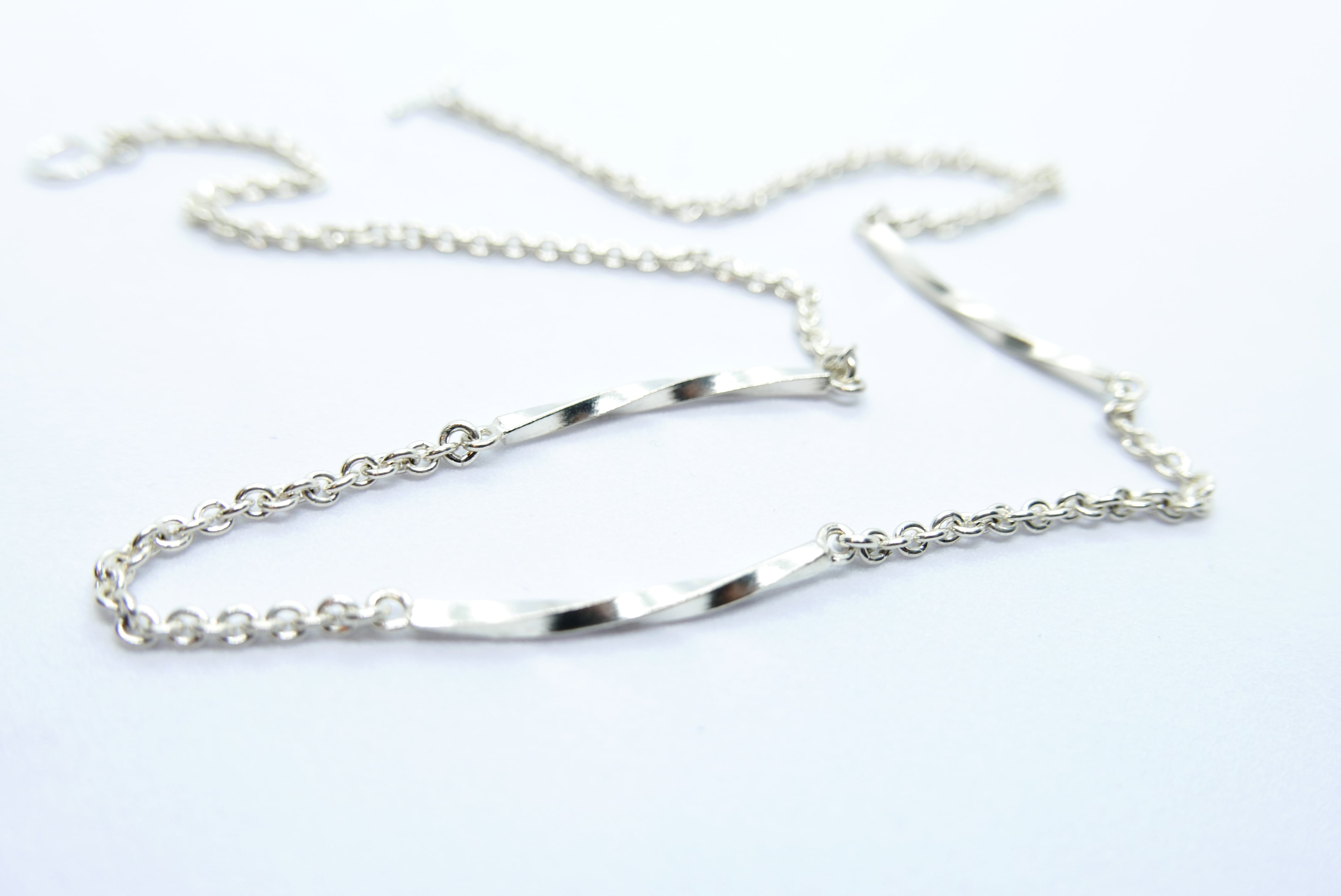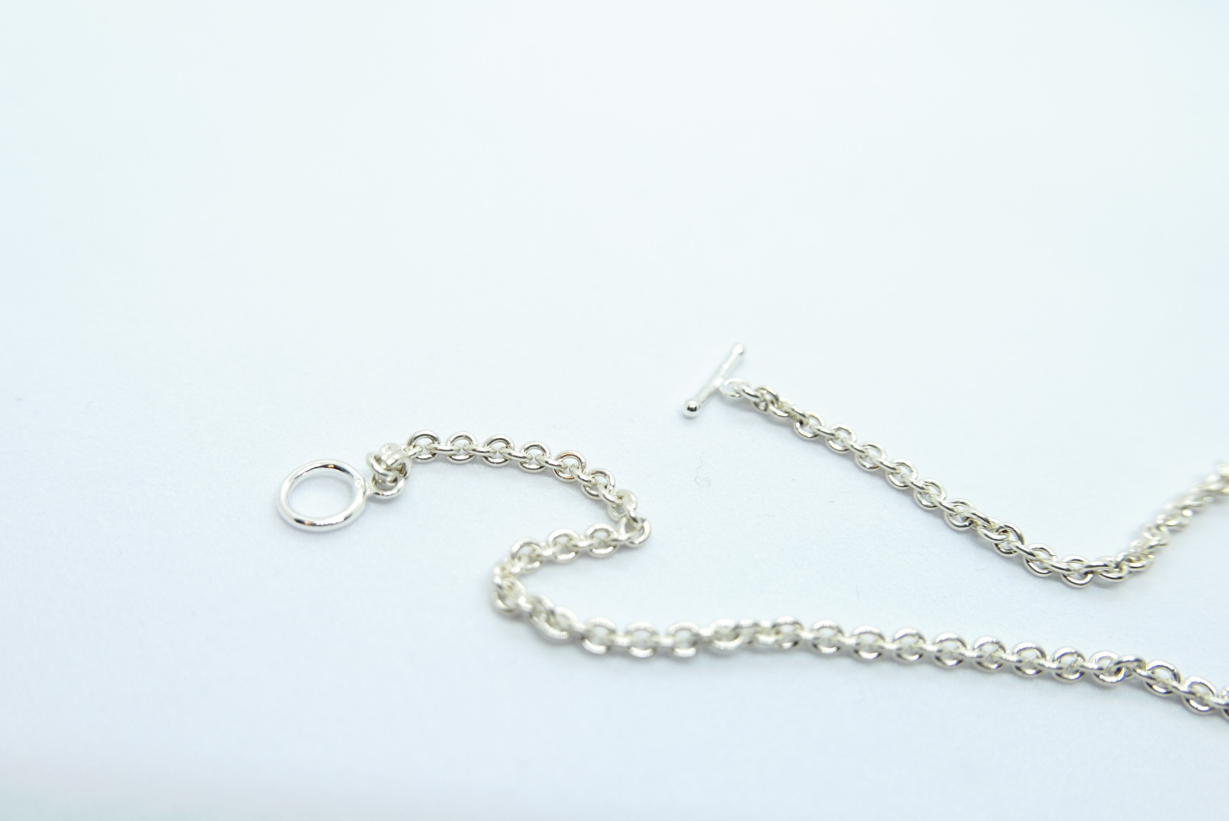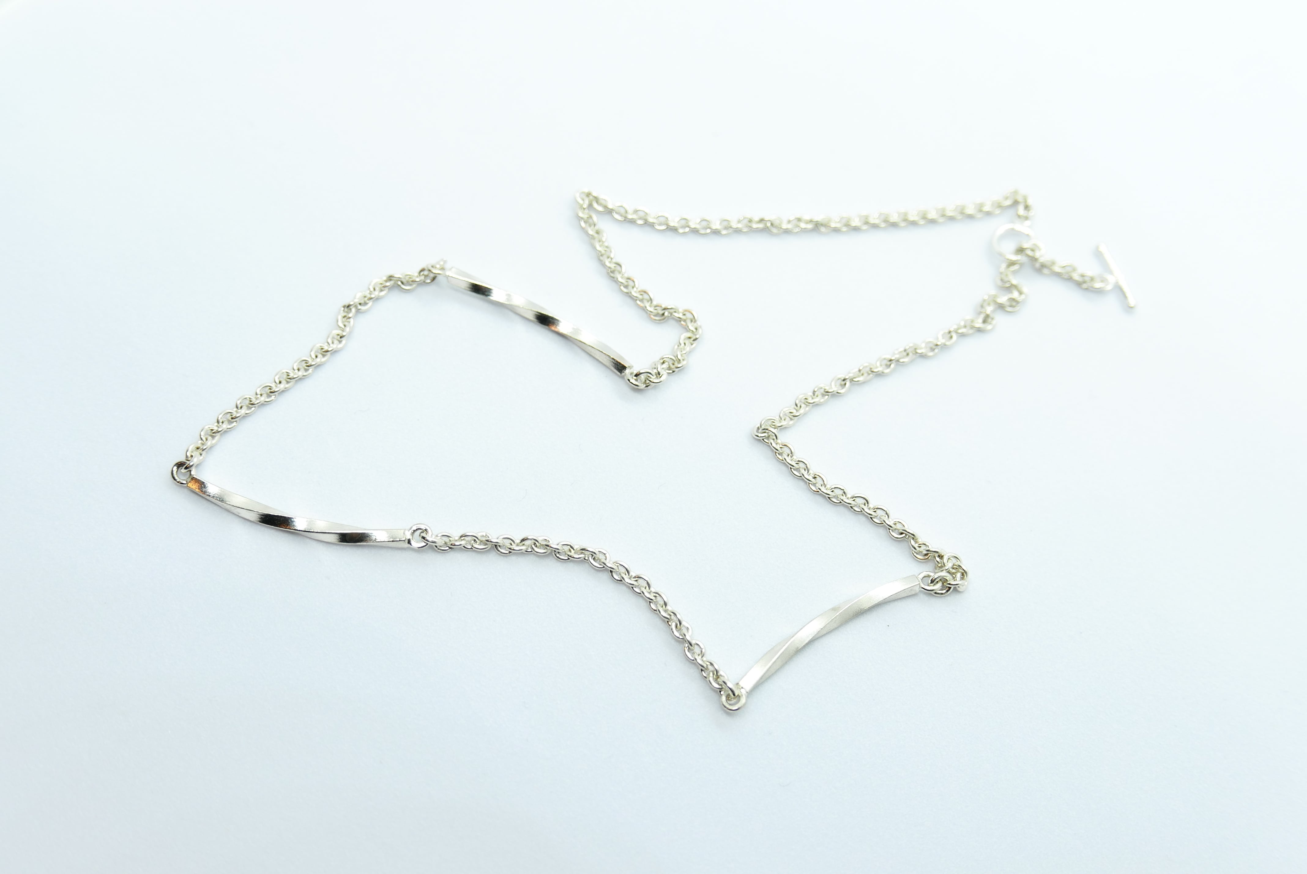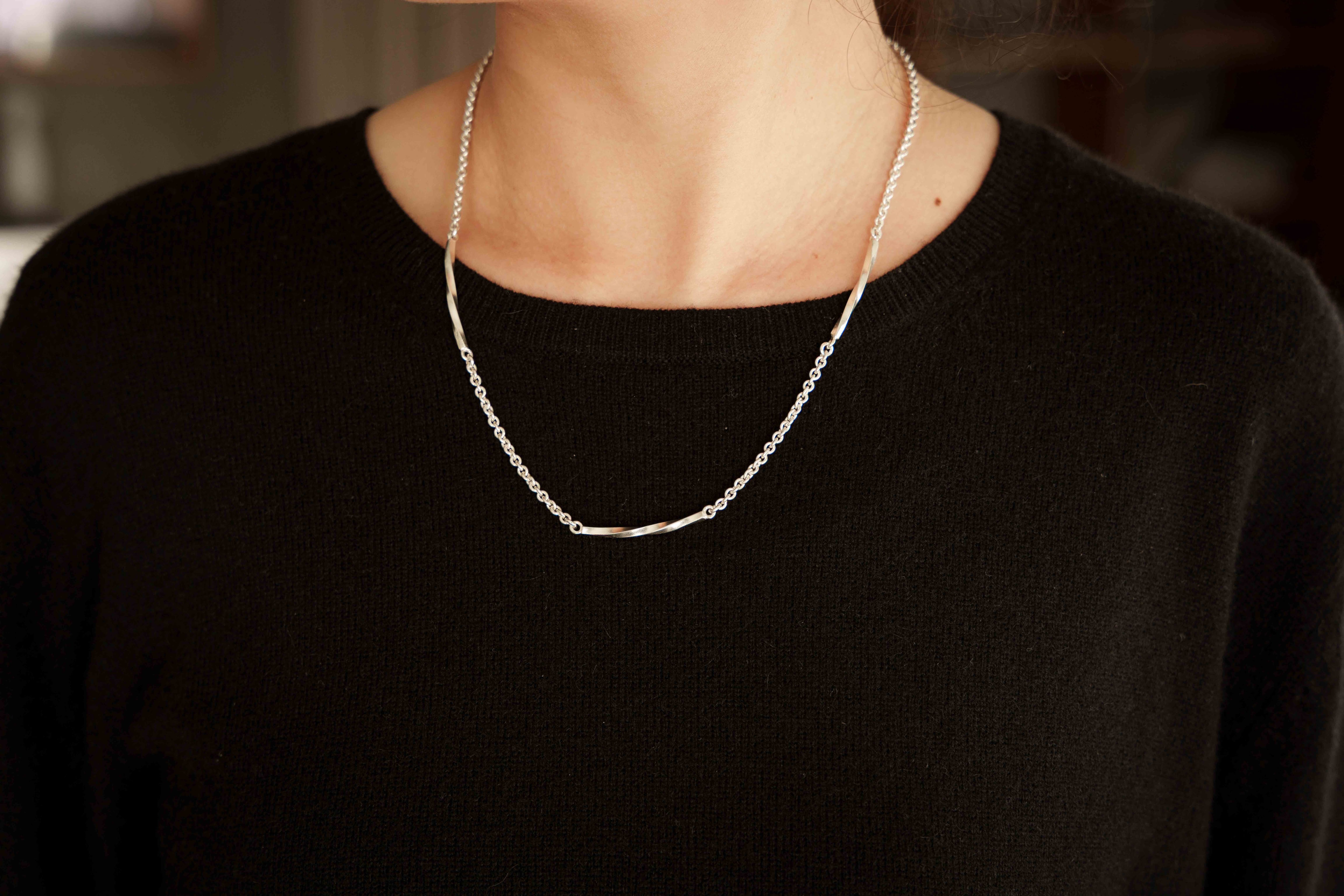 無機質なチェーンに、緩やかな曲線を描くプレートを組み合わせたネックレス。