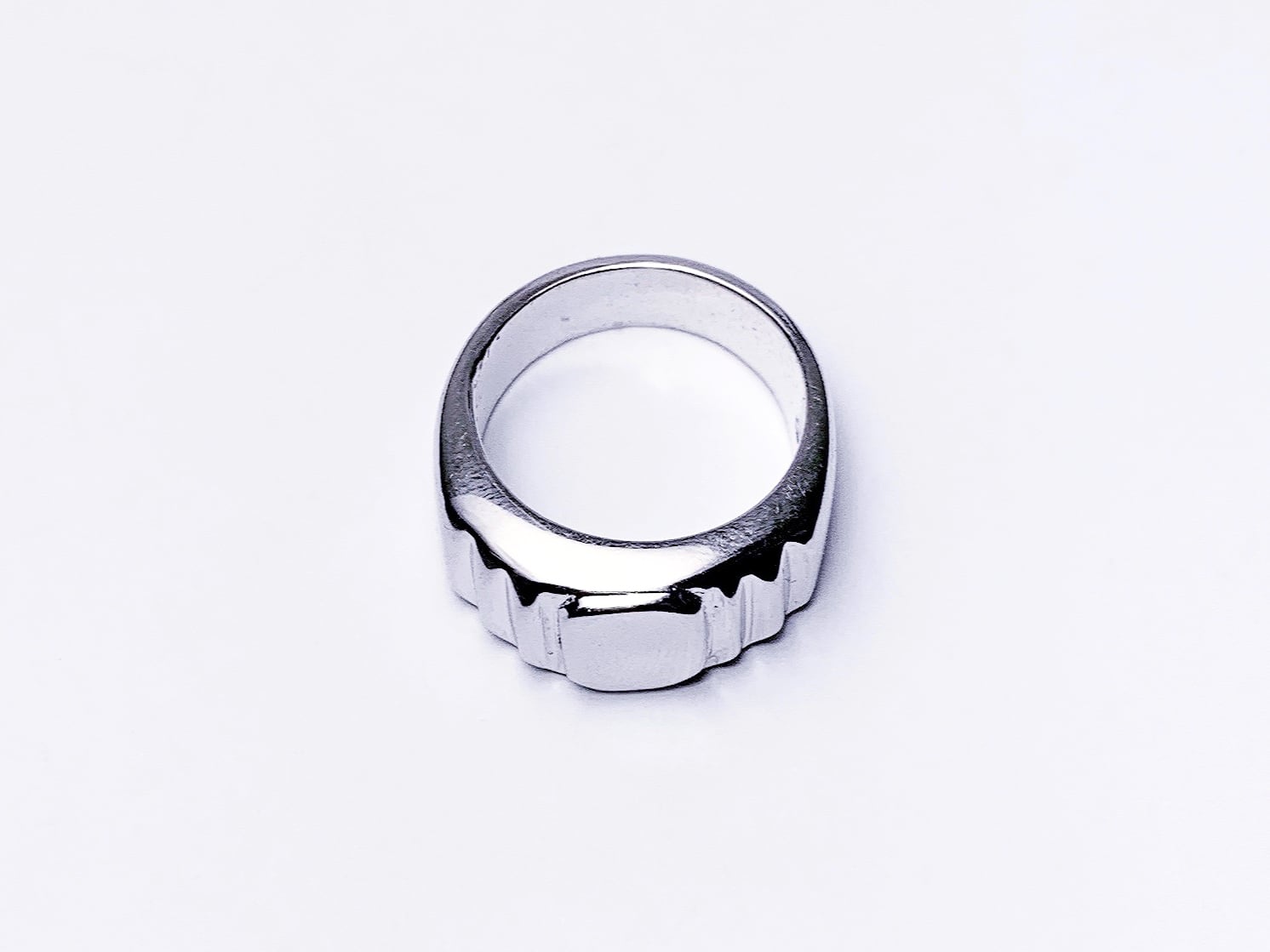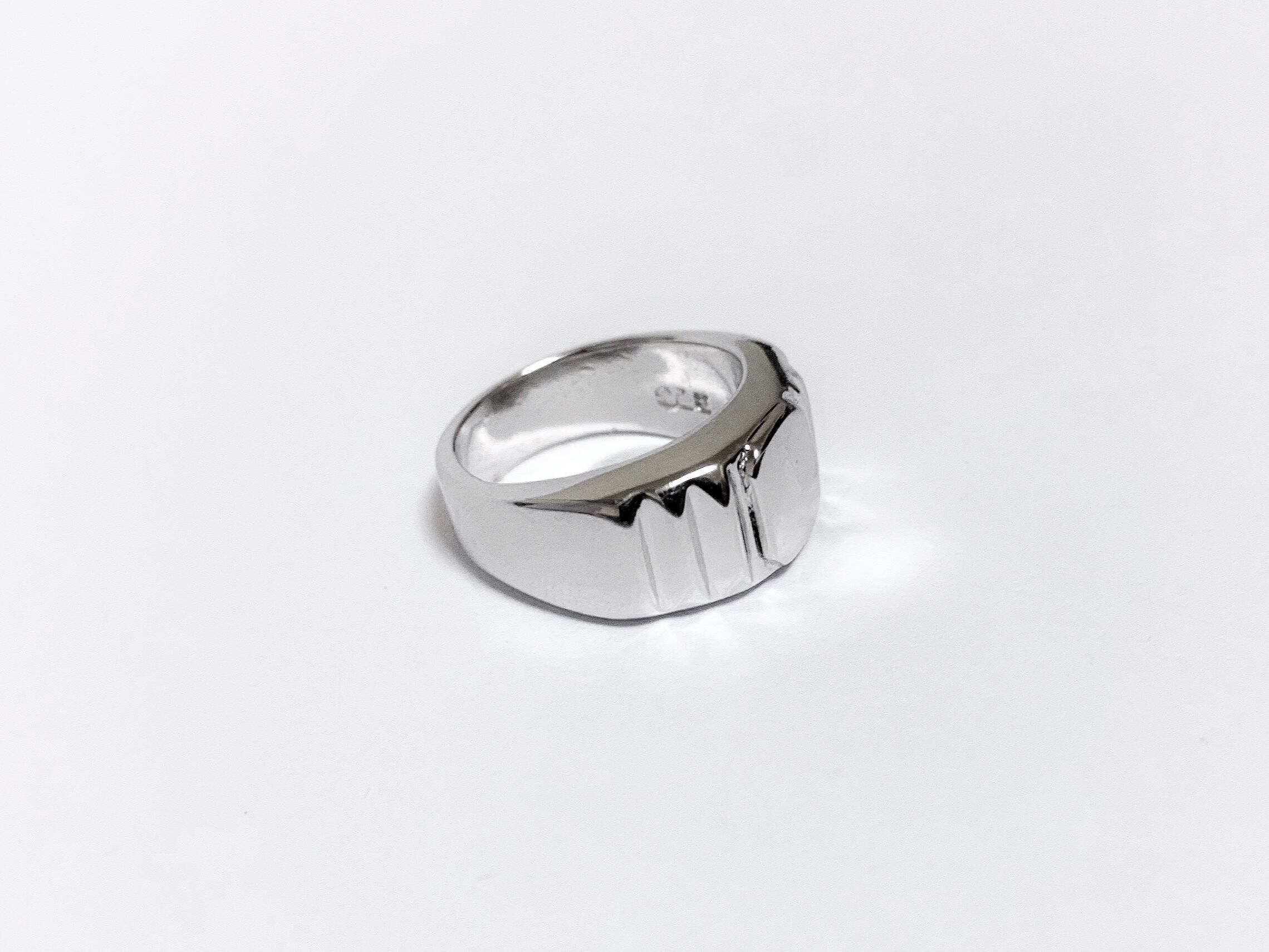 適度なボリュームとサイズ感がポイントで、様々なファッションに合わせやすいリングです。